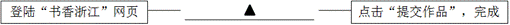 ①点击“读书活动” ②填写作品信息 ③搜索学校 ④选择具体活动项目