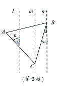 如图,直线l∥m∥n,等边△ABC的顶点B、C分别在直线n和m上,边BC与直线n所夹锐角为25°,则∠α的度数为