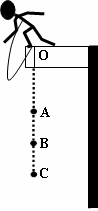有一种运动叫蹦极,如图所示是蹦极运动的简化示意图,弹性绳一端固定在O点,另一端系住运动员,运动员从O点自由下落,A点处弹性绳自然伸直。B点是运动员受到的重力与弹性绳对运动员拉力相等的点,C点是蹦极运动员到达的最低点,运动员从O点到C点的