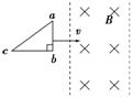 abc的ab边与磁场边界平行,现使此线框向右匀速穿过磁场区域,运动过程中保持速度方向与ab边垂直.则下列各图中哪一个可以定性地表示线框在通过磁场的过程中感应电流随时间变化的规律:( )