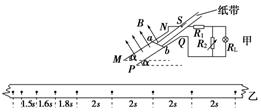[解析] (1)根据图乙纸带上打出的点迹可看出,金属棒最终做匀速运动,且速度最大,最大值为vm=,达到最大速度时,则有mgsinα=F安,F安=ILB,I=,其中R总=6R