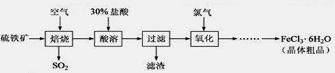 8.(2011江苏高考16)(12分)以硫铁矿(主要成分为FeS2)为原料制备氯化铁晶体(FeCl3·6H2O)的工艺流程如下:
