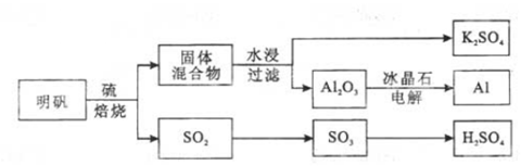 明矾石经处理后得到明矾[ KAl(SO4)2·12H2O]。从明矾制备Al、K2SO4和H2SO4的工艺过程如下所示: