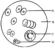 35. (3分)右图为某同学在显微镜下观察到的血涂片的视野的一部分,据图回答问题: