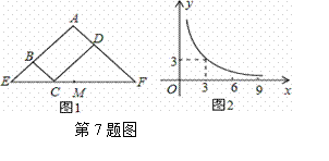 满足的反比例函数关系如图2所示,等腰直角三角形