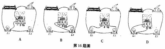 16.在实验室练习电压表的使用时,为测量L1两端的电压,四位同学连接的电路分别如图所示,其中正确的是[ ]