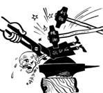 图1是1947年《东北话报》上发表的题为《沉重的铁锤连续地打在蒋介石的脊骨上》的漫画。该漫画反映的历史事件是