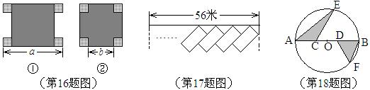 17. 为解决停车难得问题,在如图一段长56米的路段开辟停车位,每个