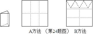 用正方形硬纸板做三棱柱盒子,每个盒子由3个矩形侧面和2个正三角形底面组成。硬纸板以如图两种方式裁剪(裁剪后边角料不再利用)