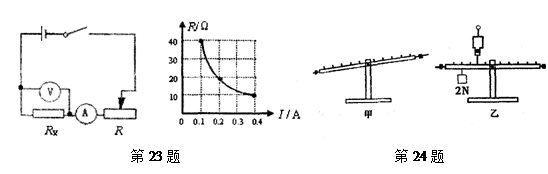 24.(8分)在探究“杠杆平衡条件”的实验中,先把杠杆的中点支在支架上,杠杆静止在如图24甲所示位置,此时杠杆处于 (选填“平衡”或“不