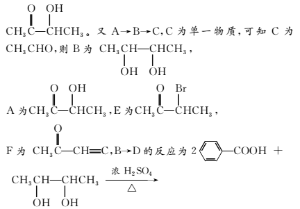 解析:由题中给出的M(A)=88,N(C)∶N(H)∶N(O)=2∶4∶1,可求得A的分子式为C4H8O2。因A中含碳氧双键且能与HBr取代,故A可能为![]()