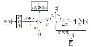 16.已知A是化学实验室中最常见的有机物,它易溶于水并有特殊香味;B的产量可以衡量一个国家石油化工发展的水平,有关物质的转化关系如图所示(部分反应条件、产物省略):![]()