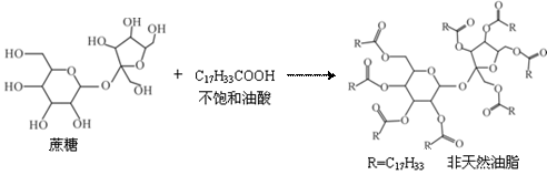 12.某非天然油脂可由直链型的不饱和油酸(C17H33COOH)与蔗糖反应而得,其反应示意图如下(注:反应式不完整),则下列说法不正确的是