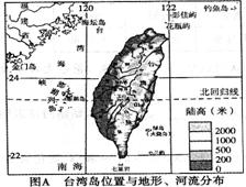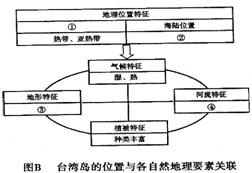 37.(8分)读图分析。图A为台湾岛位置与地形、河流分布图,图B为台湾岛的位置与各自然地理要素关联图。读图完成下列问题。