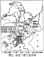 38.(11分)图甲为长江中下游平原工业分布图,图乙为东北三省工业分布图。读图完成下列问题。