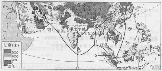 ___,经过的海峡s是_______,最后到达中国。