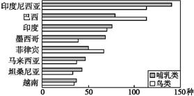8.下图是?000年世界濒危物种数量位居前列的部分国家的濒危哺乳动物、鸟类种数统计图擖/span>。读图完成下列问题。[来源:学|科|网]