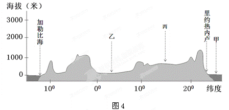 图4为“某大洲地形剖面示意图”。读4,回答第6-7题。