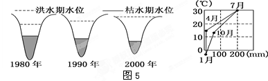 流河床、水位变化及其流域气候资料统计图。读图5,完成8-9题。