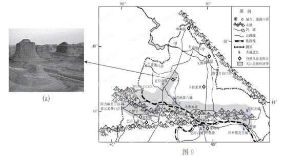37.读图9“新疆局部地区图”,回答下列问题。(24分)