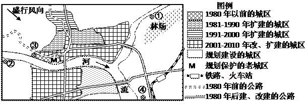 读“1980年以来某城市空间变化示意图”。完成15~16题。