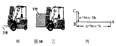 37. 如图18甲所示,叉车的水平叉臂面积为1m2,托着重为6000N,底面积为6m2的货物(如图乙),