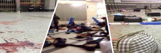 [暴恐事件] 2014年3月1日晚9时20分,10余名统一着装的暴徒蒙面持刀在云南昆明火车站广场 售票厅等处砍杀无辜群众。最新消息显示,已造成29人遇难、143人受伤。经公安部组织云南、新疆、铁路等公安机关和其他政法力量40余小时的连续奋战,已于3月3日下午成功告破。现已查明,该案是以阿不都热依木·库尔班为首的新疆东突分裂暴力恐怖团伙所为。该团伙共有8人(6男2女),现场被公安机关击毙4名、击伤抓获1名(女),其余3名已落网。