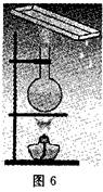 35. 如图6所示,用酒精灯对烧瓶加热一段时间后,发现瓶中水量减少.这是由于水_______ 造成的(填物态变化名称);而金属盘底部出现水滴,这是由于金属盘的温度______ ,使水蒸气发生______ 而形成的.