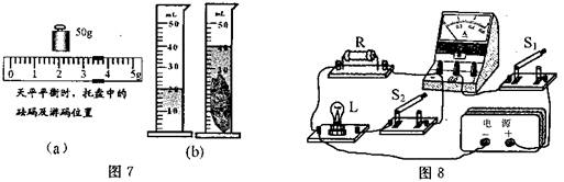 39.如图7(a)和(b)是用天平和量筒测量物体质量、体积的情景.由此可知,物体的质量为