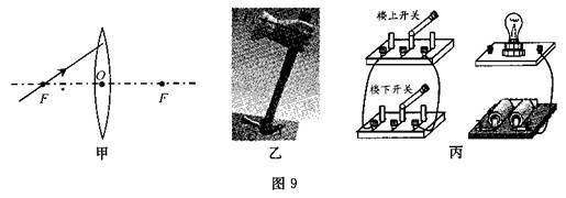 (3)图9(丙)是楼梯照明灯的模拟电路.它的要求是,在楼梯的上下两端都能对灯进行控 制.请在图上补画连接导线,使之符合这一要求.