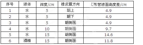 11.小明做“研究液体的压强”实验时得到的几组数据如下表: