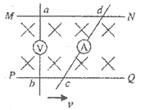 如图所示,在匀强磁场中,MN、PQ是两根平行的金属导轨,而ab、cd为串接有理想电压表和理想电流表的两根金属棒。在ab、cd同时以相同速度沿导轨向右运动时,下列结果正确的是( )