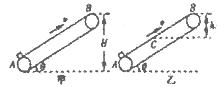 9、如图所示,甲、乙两种粗糙面不同的传送带,倾斜放于水平地面,与水平面的夹角相同,以同样恒定速率v向上运动。现将一质量为m的小物体(视为质点)轻轻放在A处,小物体在甲传送带上到达B处时恰好达到速率v;在乙上到达离B竖直高度为h的C处时达到速率v,己知B处离地面高度皆为H。则在物体从A到B过程中