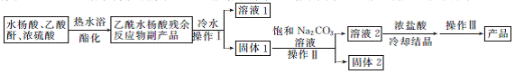 (4) 用中和法测定产品纯度:取ag产品溶解于V1mL1mol·L-1NaOH溶液中,加热使乙酰水杨酸水解,再用1mol·L-1盐酸滴定过量的NaOH,当滴定终点时消耗盐酸V2mL;计算出产品纯度为 (只需列出计算式,乙酰水杨酸的相对分子质量为180)。