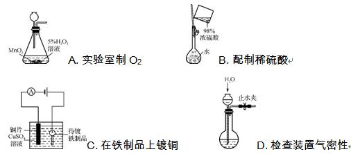 D. 将用量筒量取的10.0 mL浓硫酸沿玻璃棒注入100 mL容量瓶中,加水得到10%的溶液