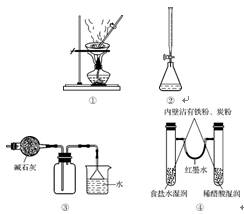 D. 利用装置④模拟铁的电化学腐蚀过程