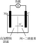 (5) 镁/间二硝基苯电池的装置如右图所示,电池工作时镁转变为氢氧化镁,间二硝基苯则转变为间二苯胺。该电池正极的电极反应式为 。