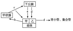 D.下丘脑合成后通过结构乙释放的d只被运输并作用于肾小管和集合管