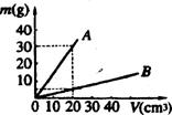 7、如图所示的是A、B两种物质的质量m与体积V的关系图 像,由图像可知,A、B两种物质的密度ρA、ρB和水的密度ρ水之间的关系是