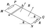 如图9-4,MN、PQ两条平行的光滑金属轨道与水平面成θ=30°角固定,轨距为L=1 m、质量为m的金属杆ab水平放置在轨道上,其阻值忽略不计.空间存在匀强磁场,磁场方向垂直于轨道平面向上,磁感应强度为B=0.5 T.P、M间接有阻值R1的定值电阻,Q、N间接变阻箱R0,现从静止释放ab,改变变阻箱的阻值R,测得最大速度为v m,得到与的关系图线如图9-5所示.若轨道足够长且电阻不计,重力加速度g取10 m/s2.求