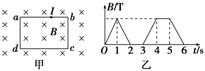 一矩形线圈abcd位于一随时间变化的匀强磁场内,磁场方向垂直于线圈所在的平面向里(如图9-7甲所示),磁感应强度