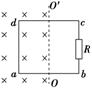 圈abcd位于纸面内,边长为L,匝数为N,线圈内接有电阻值为R的电阻,过ab中点和cd中点的连线OO′恰好位于垂直纸面向里的匀强磁场的右边界上,磁场的磁感应强度为B.当线圈转过90°时,通过电阻R的电荷量为( )