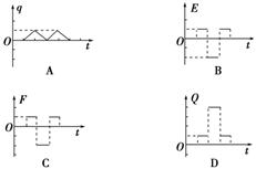 电阻为R,且线框平面与磁场方向垂直.现用拉力F使线框以速度v匀速穿过磁场区域,以初始位置为计时起点.规定电流沿逆时针方向时电动势E为正,拉力F向右为正.则以下关于线框中通过的电荷量q、感应电动势E、拉力F和产生的热量Q随时间t变化的图象正确的是( )