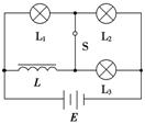 [解析] 当S闭合时,L把灯L1短路,L1不亮,IL3=IL2=;将S断开时,L1与L2串联,电流变小,L2变暗,L1被点亮,最终两灯一样亮.由于L中的电流要减小,且与L3串联,IL3′=,因此L3要闪亮一下后再恢复到原来的亮度.因此正确选项为A、D两项.