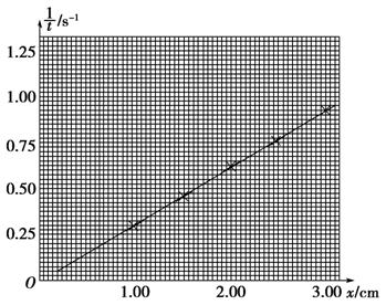 然后将小滑块从静止释放.用计时器测出小滑块从O点运动至气垫导轨上另一固定点A所用的时间t.多次改变x,测得的x值及其对应的t值如下表所示.(表中的1/t值是根据t值计算得出的)