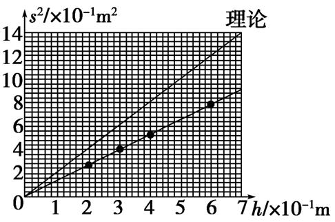 (3)由图看出在相同h下,水平位移s值比理论值要小,由s=vt=v,说明水平抛出的速率比理论值小.