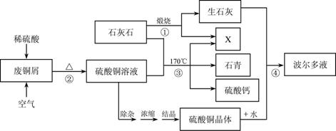 33.(6分)某化工厂用石灰石和废铜屑等设计生产石青、波尔多液的工艺流程如下: