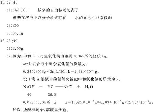 35.(7分)溶液的微粒构成决定其性质,溶液的宏观组成是其成分计算的依据。