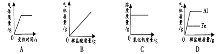 D.分别向等质量的铝和铁中加入溶质质量分数相同的稀盐酸至过量