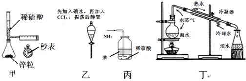 C. 装置丙:吸收氨气 D. 装置丁:海水蒸馏得淡水